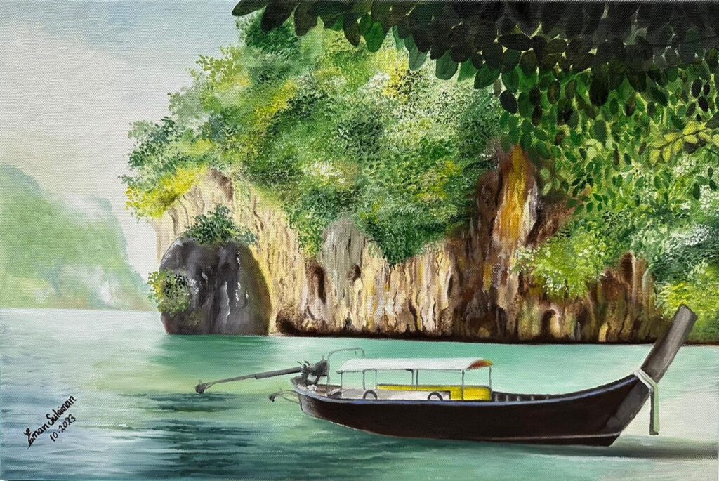 من الديكوباج إلى اللوحات الزيتية، ومن المعارض المحلية إلى التجارب الجديدة، تُواصِل إيمان سليمان رحلتها بِخُطى ثابِتة، راسِمةً طريقها الخاص بين الواقعية الكلاسيكية واللمسة المُعاصِرة التي تمنح أعمالها حياة مُتجدِّدة.