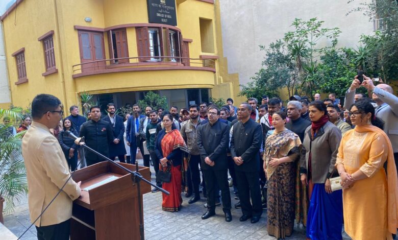 احتفلت الهند اليوم بالذكرى السابعة والسبعين ليوم الجمهورية في سفارة الهند ببيروت وفي مقر الكتيبة الهندية السادسة والعشرين في إبل السقي. وقد قام سعادة السفير محمد نور الرحمن شيخ، سفير الهند لدى لبنان، برفع العلم الهندي، وألقى كلمة أمام الحضور، كما قرأ خطاب فخامة رئيسة الهند، السيدة دروبادي مورمو، في كل من مبنى السفارة ومقر الكتيبة الهندية السادسة والعشرين في إبل السقي، جنوب لبنان. وحضر الاحتفال في السفارة أصدقاء الهند اللبنانيون وأفراد من الجالية الهندية. كما شهد الاحتفال في مقر الكتيبة الهندية حضوراً مميزاً من قوات اليونيفيل، وكتائب أخرى، ومسؤولين من القوات المسلحة اللبنانية، وأصدقاء الهند اللبنانيين، بمن فيهم رؤساء بلديات المنطقة.